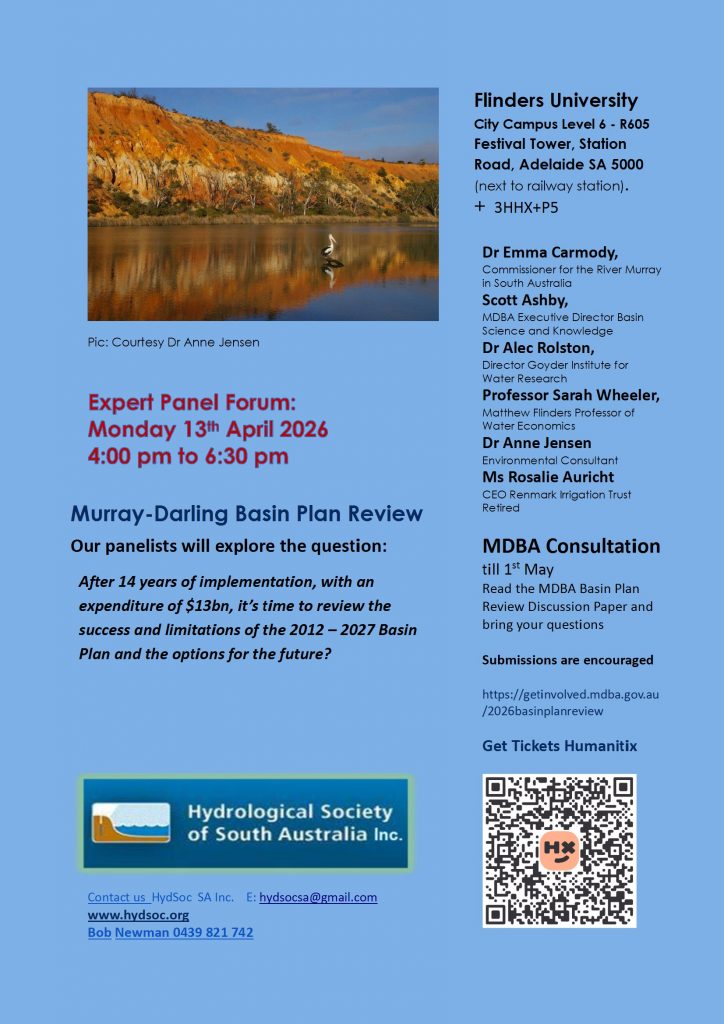 Monday 13th April 2026 Expert Panel ForumMurray-Darling Basin Plan Review Free event, tickets required for room capacity